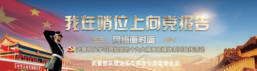 为充分展示十九大精神进军营涌现的新实践、新举措、新风采。近日,武警部队政治工作部在中央网信办和军委政治工作部网络舆论局有力指导支持下,组织策划了“我在哨位上向党报告·网络面对面”系列采访宣传活动,20余家中央主流网媒和商业网站的编辑记者,来到东海之滨,跋涉西部天山,登上南海三沙,走进神州北极,踏上中原郑州,深入武警部队位于祖国东西南北中5个具有地标特点的执勤哨位,切身感受武警官兵学习宣传贯彻党的十九大精神的火热场景,现场聆听武警官兵在哨位上向党报告的铮铮誓言!